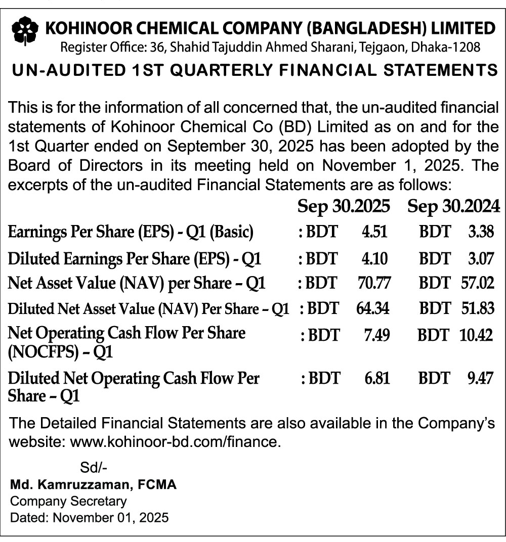 First Quarter (Q1) Financial Statement Ended on September-2025 of Kohinoor Chemical.