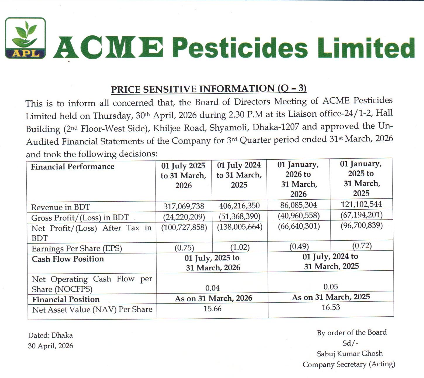 Posted ৬:৩০ অপরাহ্ণ | বৃহস্পতিবার, ৩০ এপ্রিল ২০২৬