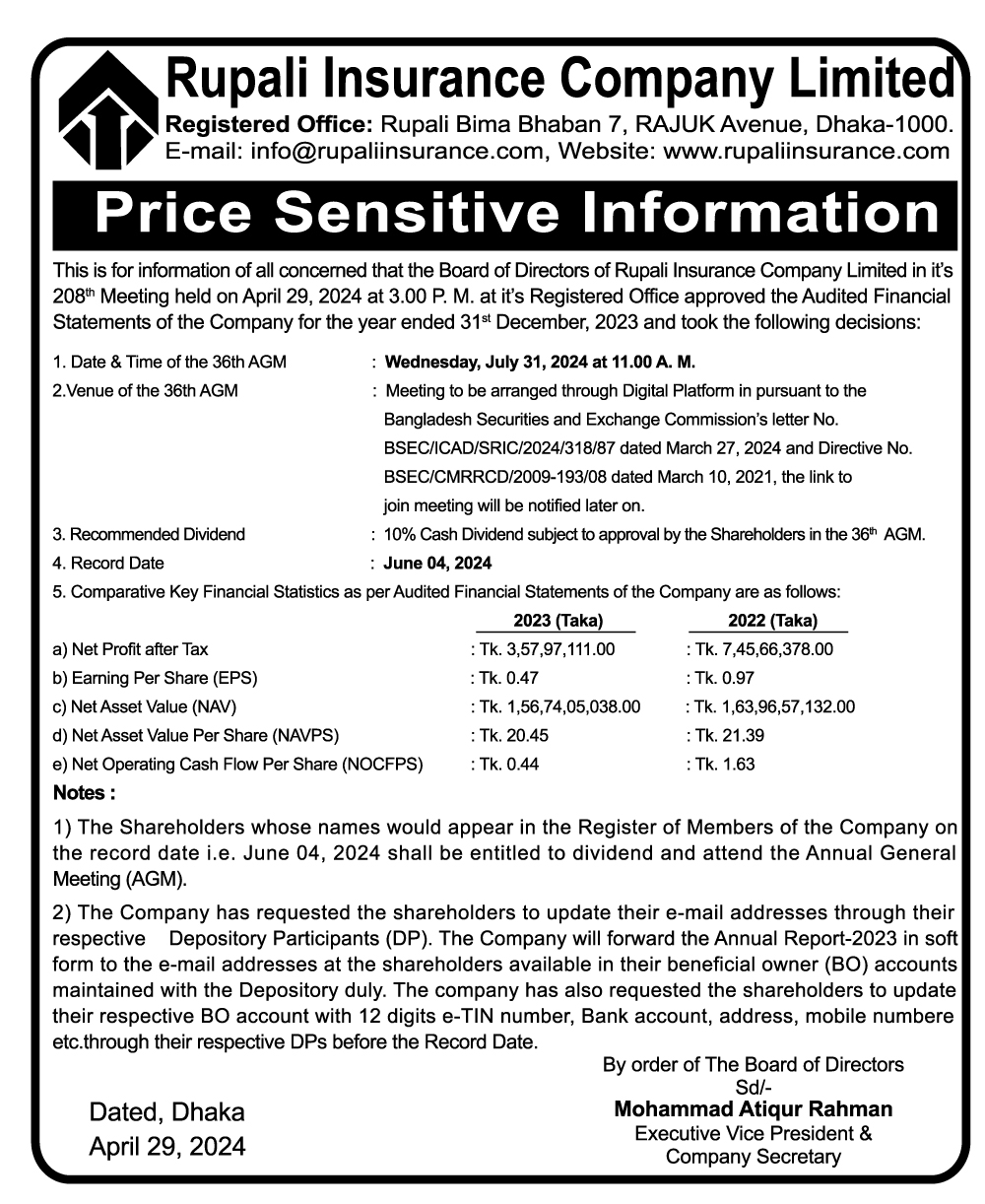 নিজস্ব প্রতিবেদক | সোমবার, ২৯ এপ্রিল ২০২৪ | 233 বার পঠিত | প্রিন্ট