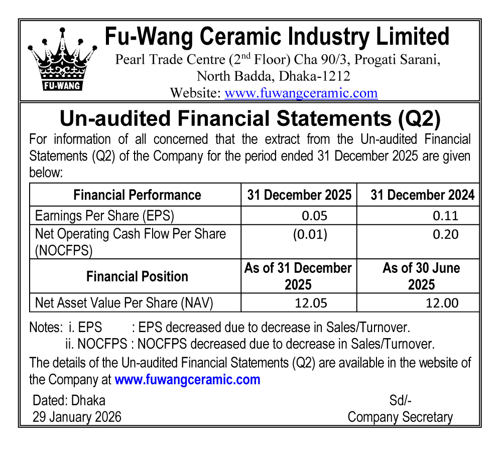 Second Quarter (Q2) Financial Statements of Fu-Wang Ceramic Industry Limited